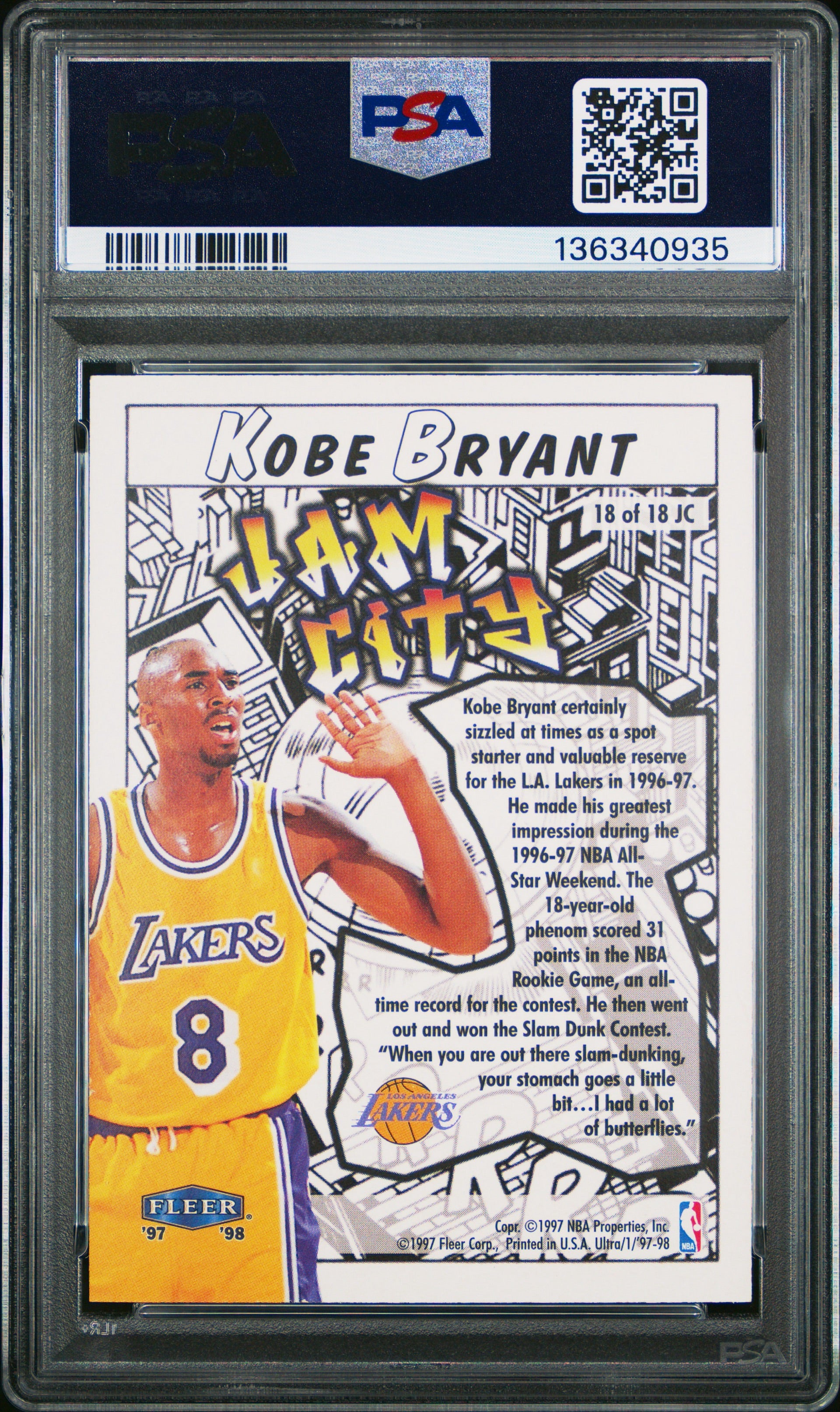 1997 Ultra Jam City Kobe Bryant #18 JC PSA 8