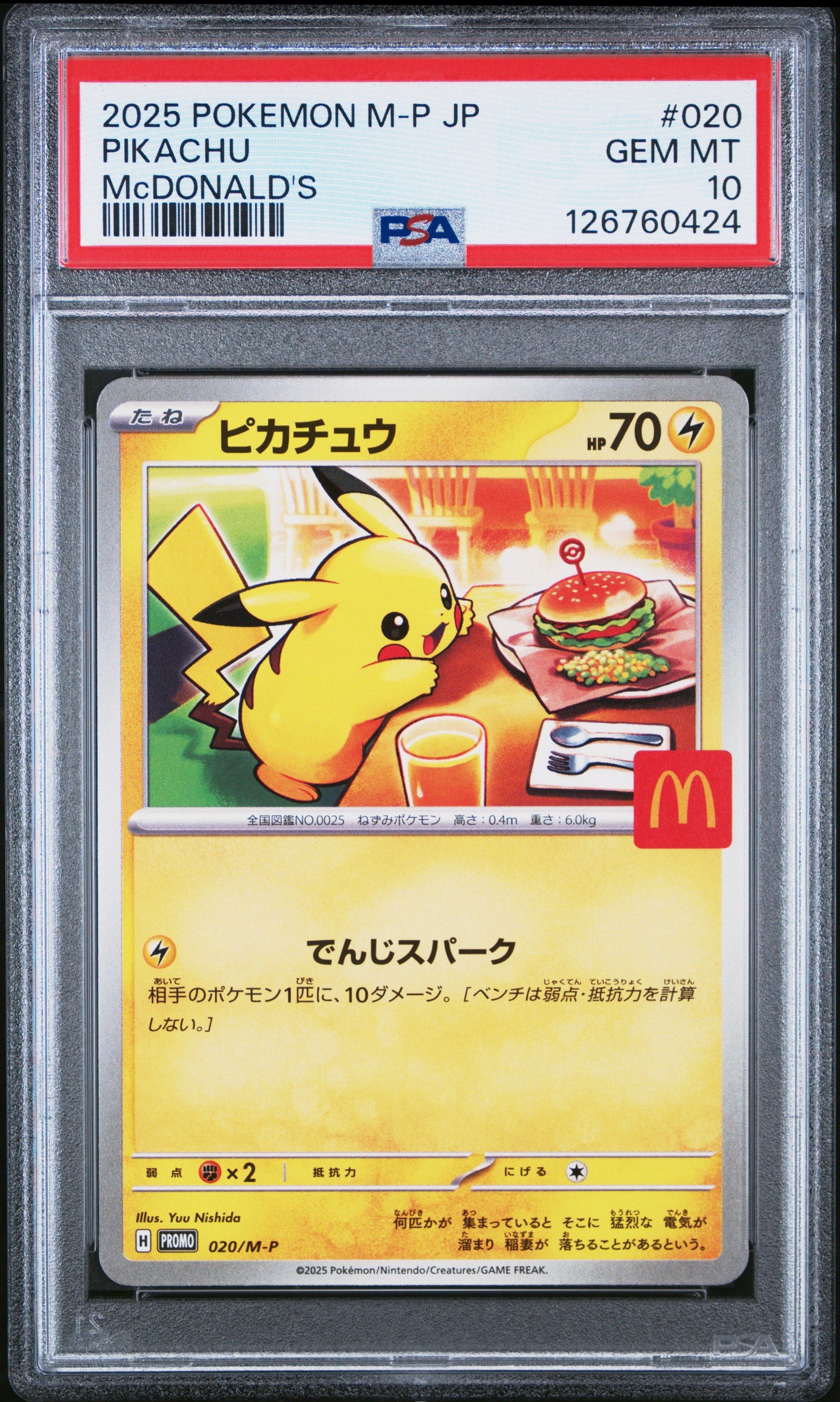 Pokemon Japanese Promo Card McDonald's 020/M-P Pikachu 2025 PSA 10